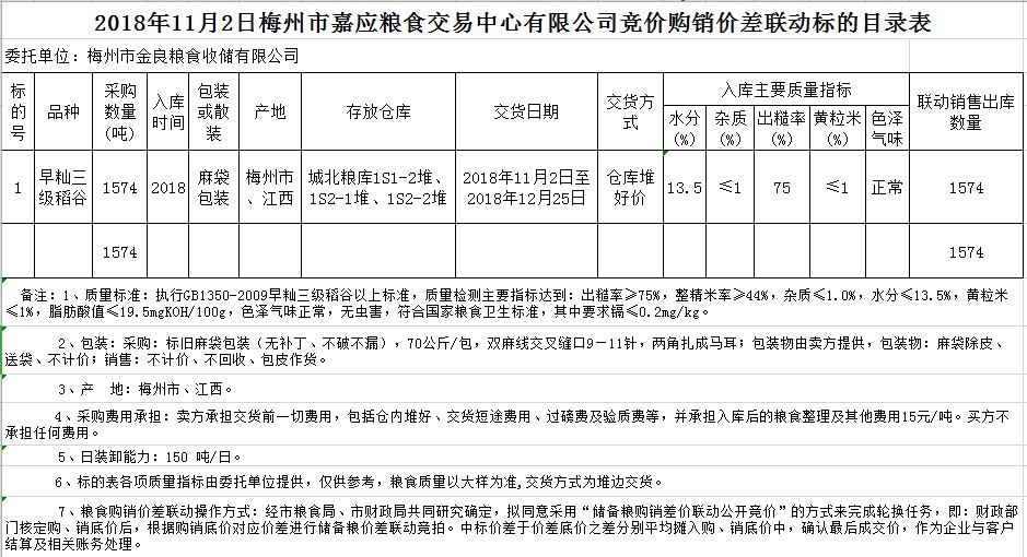 交易時間和地點:201811月2日(星期五)上午10。廣東省梅州市彬芳大道南161號梅州市糧食交易中心3樓。