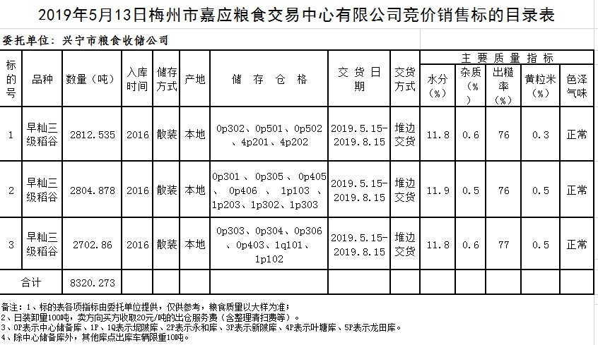 交易時間和地點:20195月13日(星期一)上午10。廣東省梅州市彬芳大道南161號梅州市糧食交易中心3樓。