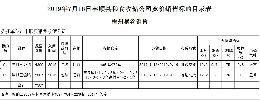 受客戶委托,梅州市嘉應(yīng)糧食交易中心有限公司定于2019年7月16日(星期二)舉辦糧食競(jìng)價(jià)交易會(huì),豐順縣糧食收儲(chǔ)公司擬銷(xiāo)售2016年早秈稻7084噸2017年早秈稻223噸。