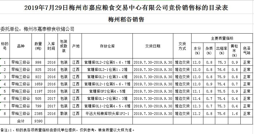 受客戶委托,梅州市嘉應糧食交易中心有限公司定于2019年7月29日(星期一)舉辦糧食競價交易會,梅州市嘉泰糧食收儲公司擬銷售2016年、2017年早秈稻9390噸。