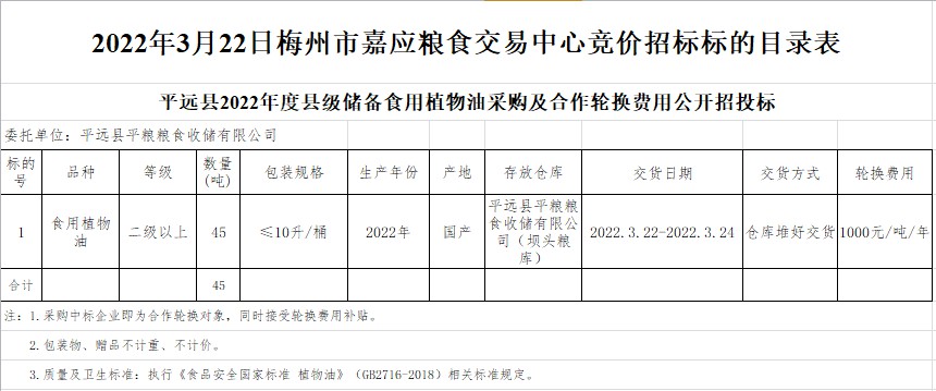 平遠(yuǎn)縣2022年度縣級(jí)儲(chǔ)備食用植物油采購及合作輪換費(fèi)用公開招投標(biāo)公告