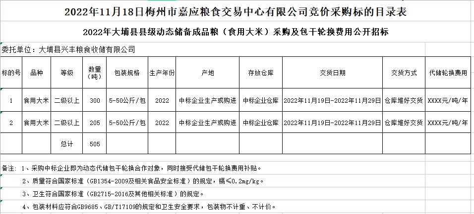 2022年大埔縣縣級動態(tài)儲備成品糧采購及包干輪換費用公開招標公告