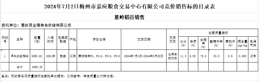 受客戶委托,梅州市嘉應糧食交易中心有限公司定于2024年7月2日(星期二)舉辦糧食競價交易會。蕉嶺縣金穗糧食收儲有限公司擬銷售2021年產(chǎn)早秈稻谷3060.28噸。