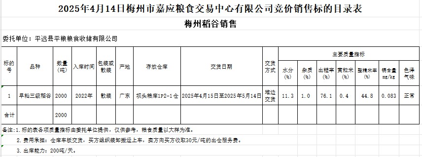 受客戶委托,梅州市嘉應(yīng)糧食交易中心有限公司定于2025年4月14日(星期一)舉辦糧食競價交易會。平遠縣平糧糧食收儲有限公司擬銷售2022年產(chǎn)早秈稻谷2000噸。