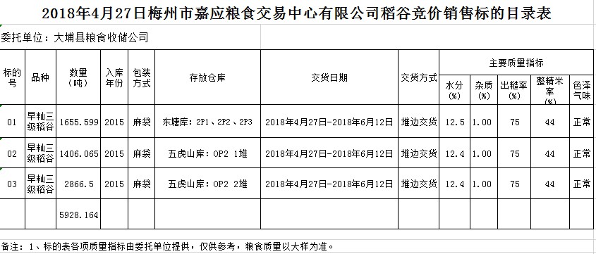 交易時間和地點(diǎn):2018年4月27日(星期五)上午10時。廣東省梅州市彬芳大道南161號梅州市糧食交易中心3樓。